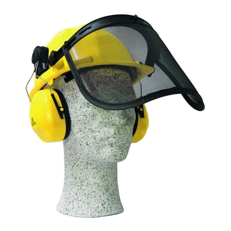 Шлем защитный комбинированный Champion C1001 с нейлоновым сетчатым щитком, козырьком и противошумными наушниками может использоваться для специального применения при работах по уходу за деревьями.