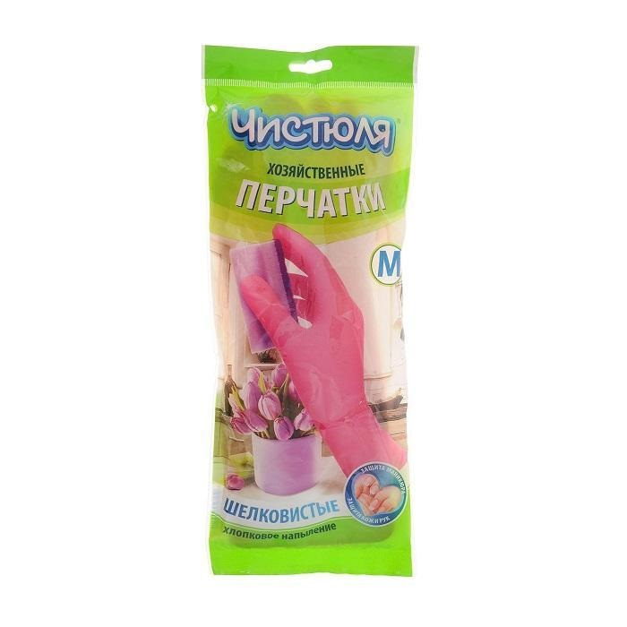 Высококачественные перчатки из натурального прочного латекса. Перчатки имеют шелковистую фактуру и хлопковое напыление. Благодаря рифлению на ладони руки не скользят даже в мыльной воде. Перчатки совершенно безопасны при соприкосновении с пищевыми продуктами.
