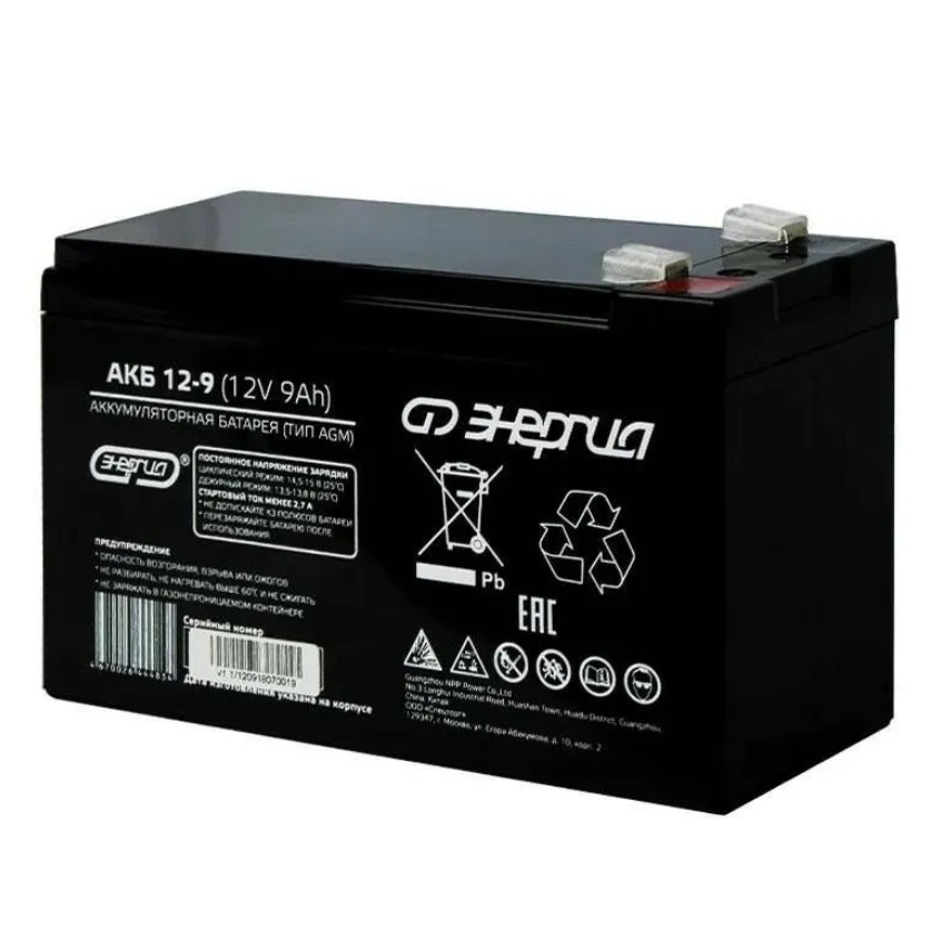 Аккумулятор Энергия АКБ 12-9, 12В, 2.7Ah Е0201-0043