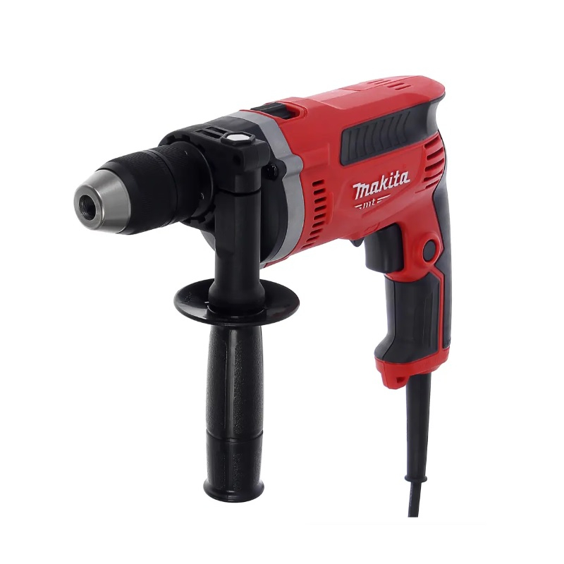 Дрель Makita M8101 оснащена быстрозажимным патроном, дополнительной рукоятью для усиления упора и ограничителем глубины обработки. Вес инструмента составляет 2 кг. Клавиша блокировки включения и удобная ручка облегчают эксплуатацию дрели в стесненных условиях, при выполнении работ под потолком.