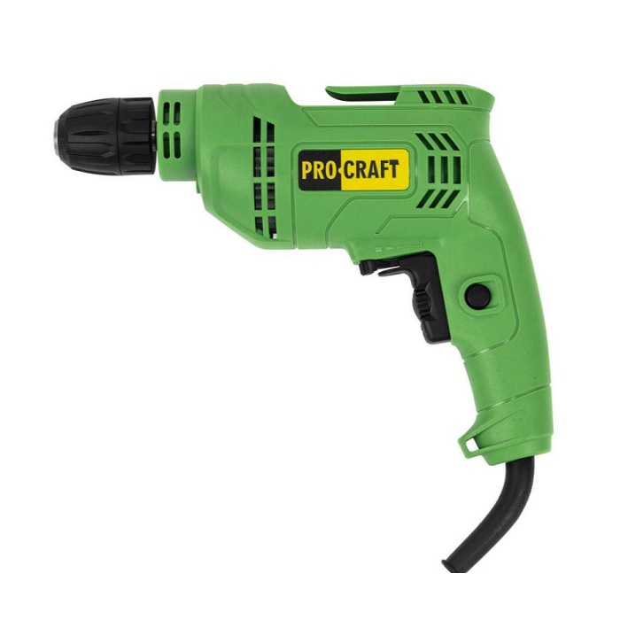 Дрель ProCraft PS700 – инструмент для сверления отверстий в деревянных, пластиковых, кирпичных, каменных, металлических, гипсокартонных поверхностях. Безударная электрическая дрель отличается небольшим весом, компактностью, за счет чего обеспечивается комфортная работа даже в стесненных условиях. Высокооборотистый двигатель (0.7 кВт) с легкостью разгоняется до 3300 оборотов в минуту. Для регулировки оборотов применяется плавная настройка колеса регулятора. Электродрель отличается эргономичным дизайном, сбалансированной конструкцией, снижающей нагрузку на руку. Длинный сетевой кабель обеспечивает возможность работы на большом расстоянии без необходимости применения переносок.