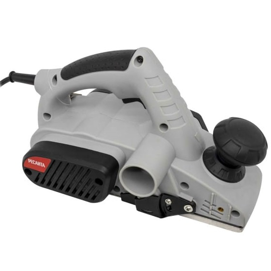 Рубанок электрический Ресанта Р-82/1100 предназначен для строгания древесины в бытовых и производственных условиях. Рубанком можно строгать плоские поверхности и кромки (фаски). Рубанок обеспечивает направленный выброс стружки и плавное регулирование глубины строгания. Электрорубанок легко справляется с любыми породами дерева и разными видами пиломатериала. Ширина строгания – 82 мм. В зависимости от стоящих задач глубину строгания можно менять в диапазоне от 0 до 3 мм. Для ее изменения достаточно повернуть шарообразную рукоятку, расположенную в передней части корпуса. Вокруг ручки имеется круговая шкала, которая позволяет точно выставить нужный параметр. Электрический рубанок имеет удобную эргономичную форму с широкой рукояткой и дополнительной ручкой. Кнопка включения расположена в удобном для нажатия месте. Устройство имеет блокировку на случай непреднамеренного запуска, а также фиксацию выключателя для удобства длительной работы с инструментом. Во время строгания стружка отводится в сторону, что обеспечивает чистоту и аккуратность выполнения работ. Ножи с двусторонней заточкой увеличивают длительность использования инструмента без необходимости делать перерыв на затачивание лезвий.