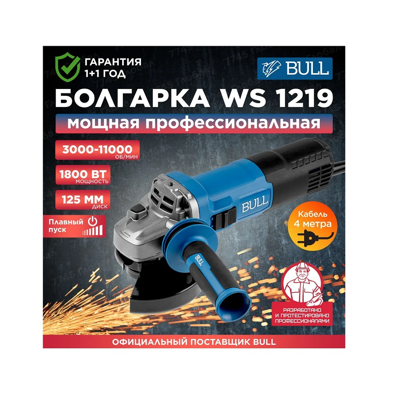 Описание УШМ BULL WS 1219 1800Вт 1333516