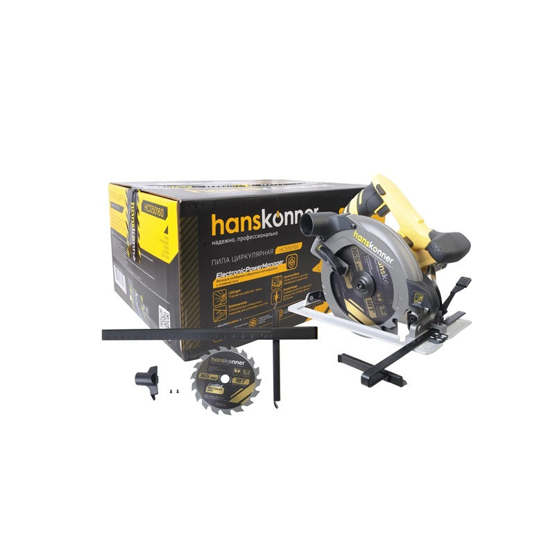 Пила дисковая Hanskonner HCS50160 надежный и маневренный электроинструмент для осуществления прямых пропилов в заготовках из древесины, фанеры и пластмассы. Данная модель отличается прочной литой алюминиевой платформой, что способствует качеству и точности реза. Функция поддержания оборотов под нагрузкой содействует продуктивности работы, а плавный пуск долговечности инструмента. В комплекте идет универсальный фланец DoubleFlange под посадку диска 20/30 мм. Удобно применять рычаг фиксации основания для настройки глубины и угла пиления в одно движение. Также в конструкции циркулярной пилы предусмотрена возможность стационарного использования. При плохом освещении выручает встроенная LED-подсветка. Морозостойкий резиновый сетевой кабель длинной 4 м, позволяет охватит рабочую зону площадью 50 м2.