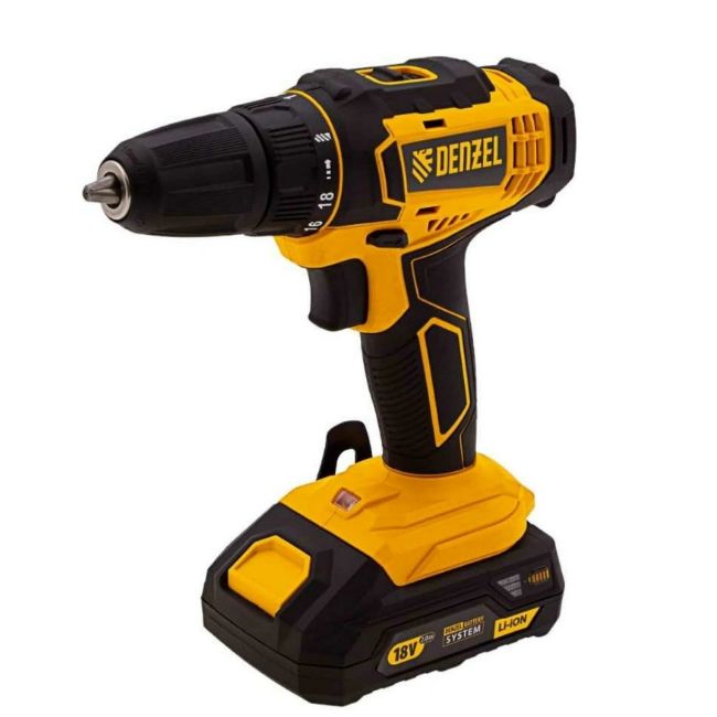 - Дрель-шуруповерт аккумуляторная DENZEL CDL-18-02BM (18В 2акк.*2,0Ah+з.у)
