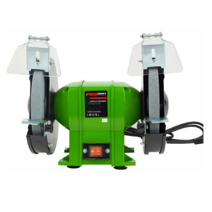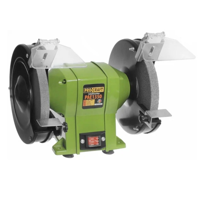 Procraft PEA1350 – точильный станок для заточки различных инструментов. Станок оснащен двумя дисками, вращающимися на высоких оборотах. По желанию на инструмент можно установить откидную защиту из пластика, которая значительно повышает безопасность при работе: экраны предотвращают попадание искр и стружки на оператора. Точило имеет резиновые присоски на подошве. Также при работе инструмента предусмотрен низкий уровень вибрации и шума. Имеются высокая мощность асинхронного двигателя, прочные защитные кожухи и диски с различной зернистостью.