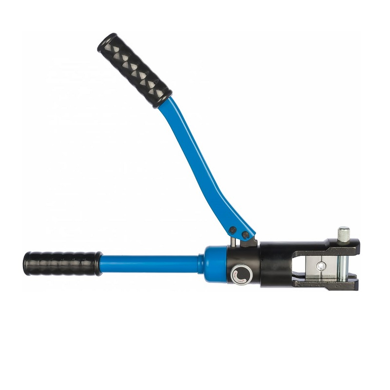 Гидравлический ручной пресс КВТ ПГР-300 49628 представляет собой простой в работе инструмент для выполнения электромонтажных работ. Приспособление предназначено для обжима медных и алюминиевых наконечников в диапазоне от 10 до 300 мм².
