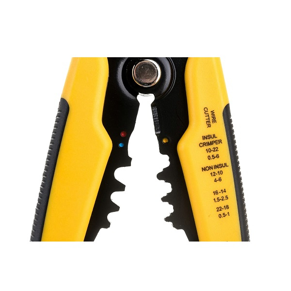 У стриппера установлен ограничитель длины, что помогает экономить время и провод. Зазубренная внутренняя сторона упрощает снятие изоляции после резки.