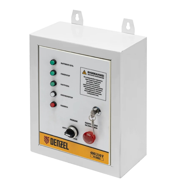 Блок автоматики Denzel PS-120TS 946715 для бензогенератора позволяет создать систему автономного электроснабжения. Устройство рассчитано на нагрузку 14 кВА и будет полезно в загородном доме и на строительной площадке.Блок управления переключает питание на генератор при падении напряжения в стационарной сети, а при восстановлении электроснабжения останавливает генератор и переключает питание объекта обратно на сеть.