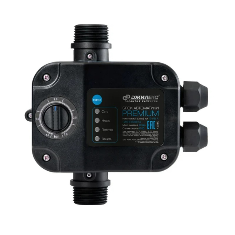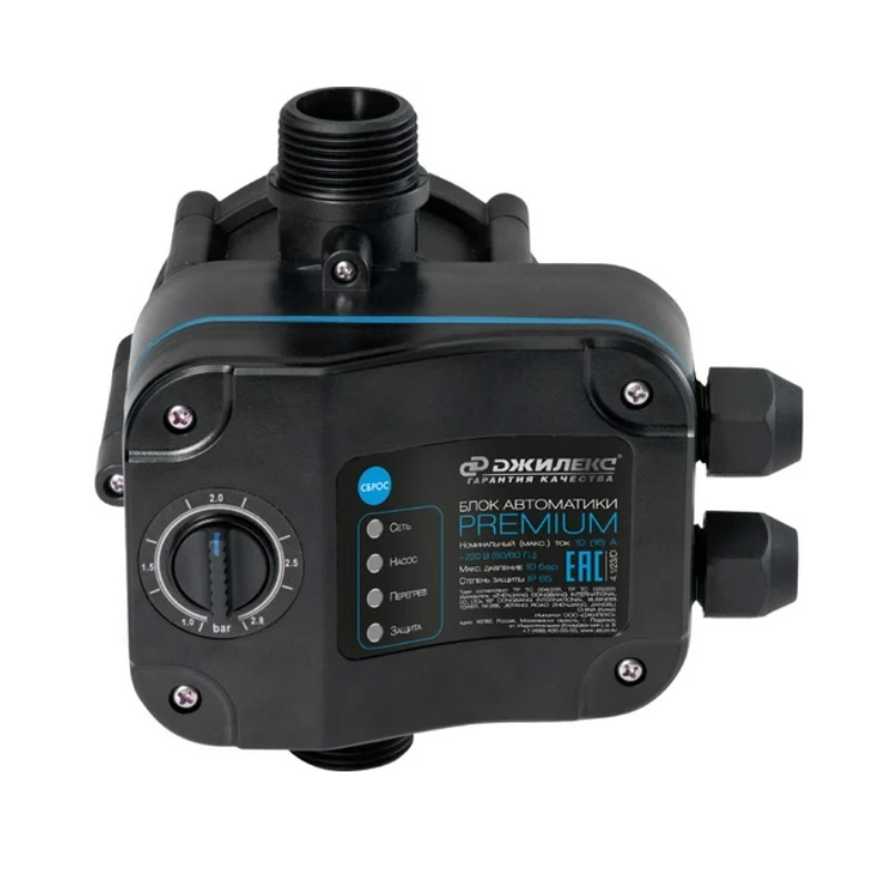Блок автоматики Джилекс Premium предназначен для автоматического управления погружными и поверхностными насосами. В конструкцию встроена защита от "сухого хода", работы "в тупик" и перегрева. Блок автоматики оснащен встроенным обратным клапаном, предотвращающим обратный поток воды. Имеет регулировку давления включения насоса.