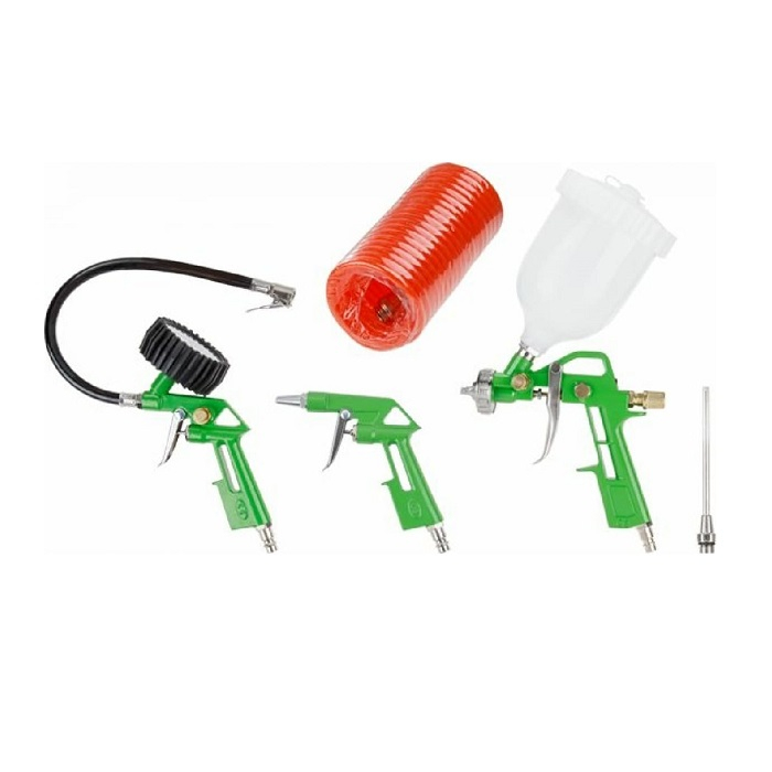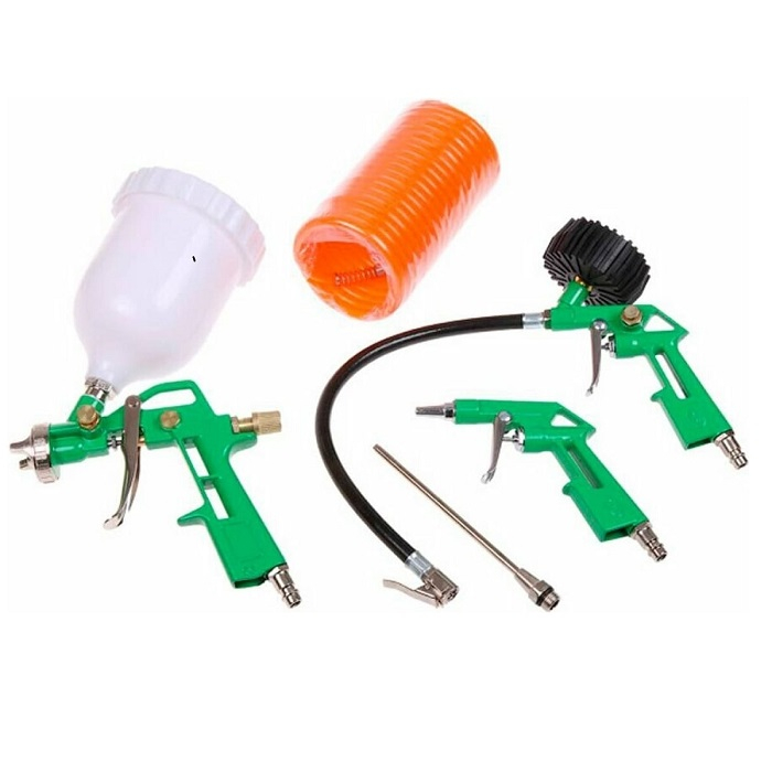 Набор пневмоинструмента ECO SGK-51 это универсальный набор для работы с пневмоинструментом. Набор используется при покраске, продувке воздухом различные поверхности, подкачка шин и т.д. В наборе: краскораспылитель, пистолет для подкачки шин, пистолет продувочный, длинная насадка, спиральный шланг. Комплект будет востребован и профессионалами, и в домашней мастерской.