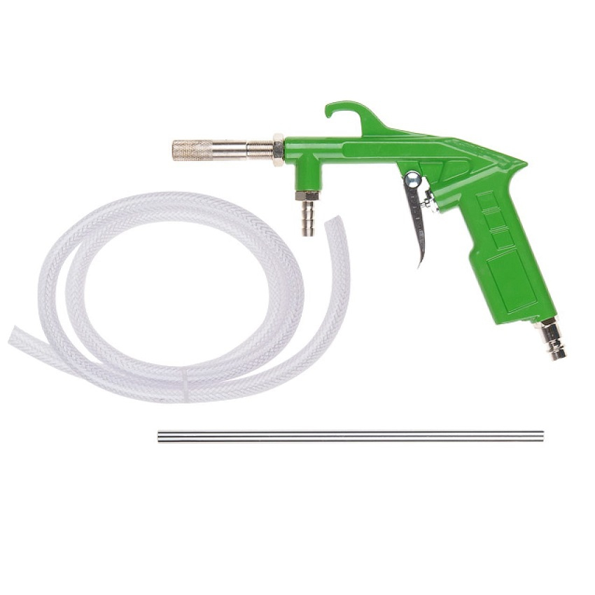 Пескоструйный пистолет позволяет очищать различные поверхности от нежелательных осадков, например, ржавчины или старой краски, для улучшения качества обрабатываемой поверхности путем удаления различных неровностей и заусениц. Так же способен полировать или матировать поверхности перед нанесением различных покрытий.