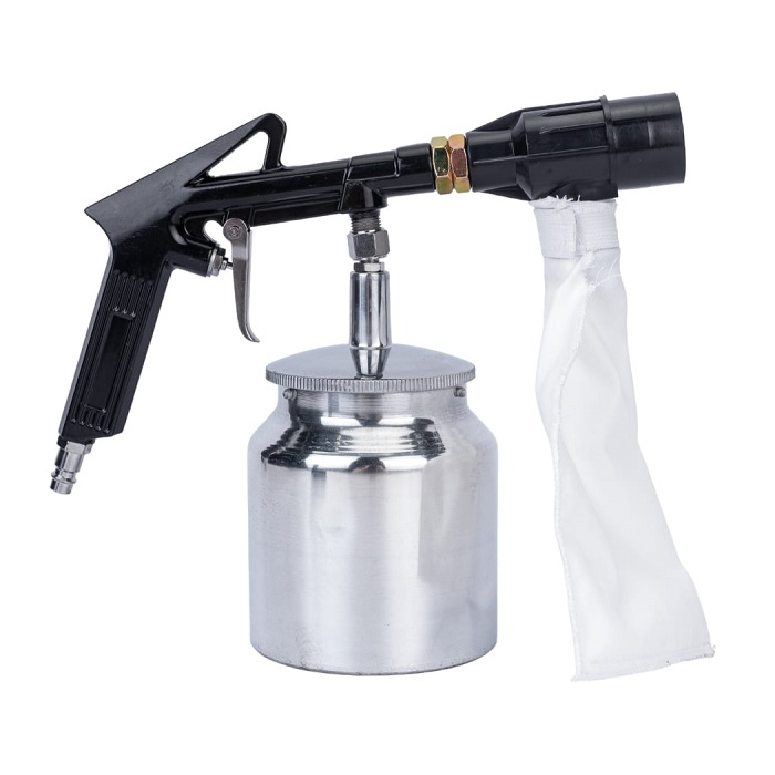 Пистолет пескоструйный ECO ASB-06S с баком с системой сбора отработанного песка (дополнительный мешок), благодаря которой можно использовать песок повторно. 4 насадки разных форм для локальной обработки позволяют работать с конкретными участками, не повреждая лакокрасочное покрытие вокруг.