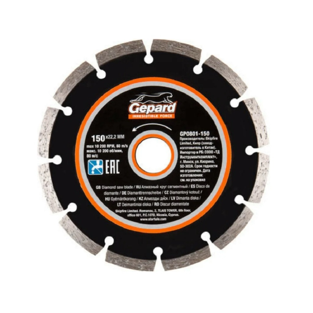 Диск алмазный GEPARD GP0801-150 150х2.2х22.2 мм применяется для резки асфальтового полотна, бетона, гранита, кирпича, камня и других твердых материалов.