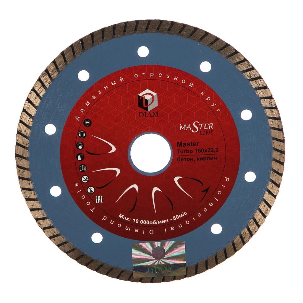 Алмазный диск DIAM Turbo Master Line 150х2.2х22.2мм, 000160 применяется для реза бетонных конструкций, кирпича.