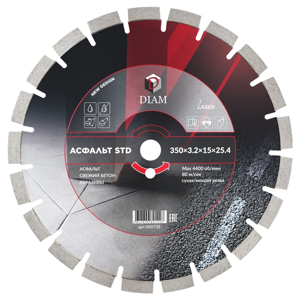 Описание диска DIAM STD асфальт, свежий бетон, абразивы 350х3.2х25.4 мм, 000735