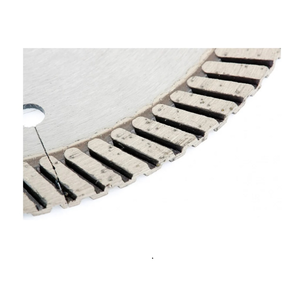 Диск алмазный Gross турбо 125х2.4х22.2 мм 73029 используется в угловых шлифовальных машинах для сухой резки бетона, железобетона, мрамора, шлакоблоков и гранита. Оснащен компенсационными прорезями, для уменьшения колебаний, шумов, а также для исключения перегрева и деформации диска. Высота алмазного слоя - 10 мм.