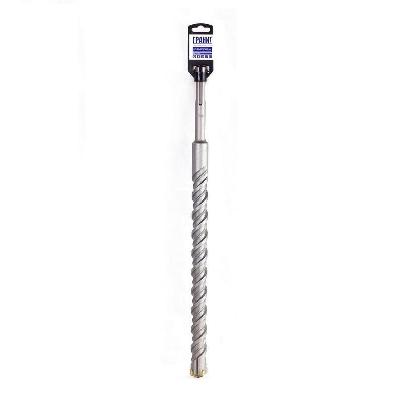 Бур по бетону ГРАНИТ для патрона SDS-Max применяется для сверления отверстий в бетоне, армированном бетоне, кирпичной кладке, камне. Выполнен из конструкционной легированной стали 40Cr, режущие кромки - из карбида вольфрама.