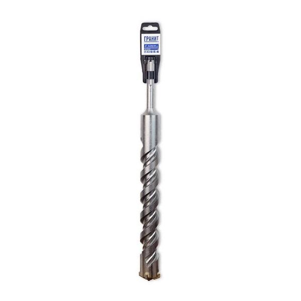 Бур по бетону ГРАНИТ для патрона SDS-Max применяется для сверления отверстий в бетоне, армированном бетоне, кирпичной кладке, камне. Выполнен из конструкционной легированной стали 40Cr, режущие кромки - из карбида вольфрама.