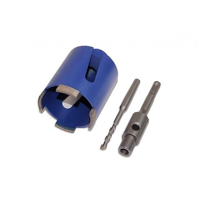 Алмазная коронка СТРОНГ инструмент SDS+ для безударного сверления глухих подрозеточных отверстий в керамограните, железобетоне, кирпиче, армированном бетоне, без применения охлаждающей жидкости. Имеет внутреннее резьбовое посадочное отверстие М16 и комплектуется центровочным твердосплавным сверлом с переходником М16/SDS+.