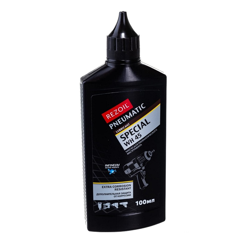 Масло минеральное REZOIL PNEUMATIC Special WH-45 для пневматического инструмента 03.008.00016, 0.1 л применяется для пневматического инструмента с вращательным и ударным действием.