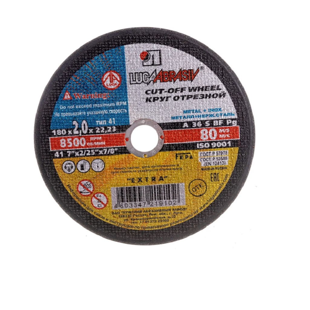 Описание круга отрезного Луга Абразив, металл, нержавеющая сталь 180х2.0х22.2 мм