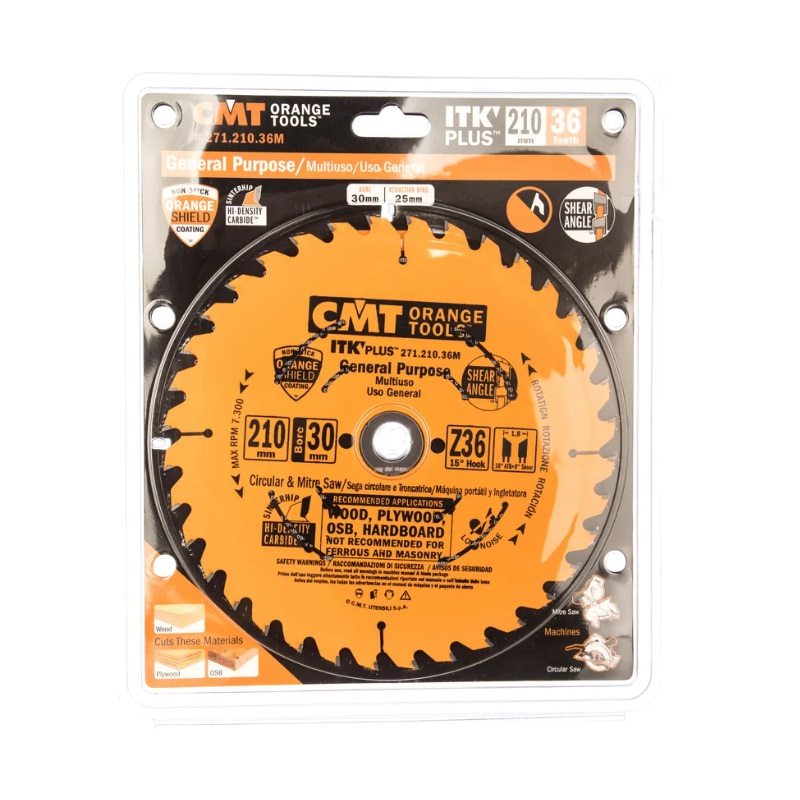 Диск пильный по дереву CMT 210х30/25х1,8/1,2 мм Z36, 271.210.36М - это высококачественный пильный диск, предназначенный для работы с дисковыми пилами и станками по дереву. Он изготовлен из твердосплавных материалов, что обеспечивает его долговечность и износостойкость. Диск подходит для выполнения разнообразных операций по обработке древесины, таких как распил, торцевание, снятие фаски и многое другое. Благодаря специальной форме зубьев и высококачественным материалам, он обеспечивает чистый и точный рез без сколов и заусенцев.