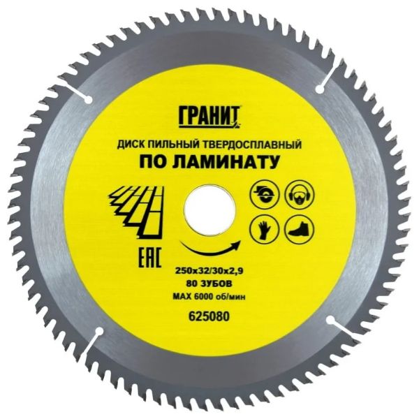 - Диск пильный ГРАНИТ 250*32*80зуб.*2,9мм по ламинату 625080