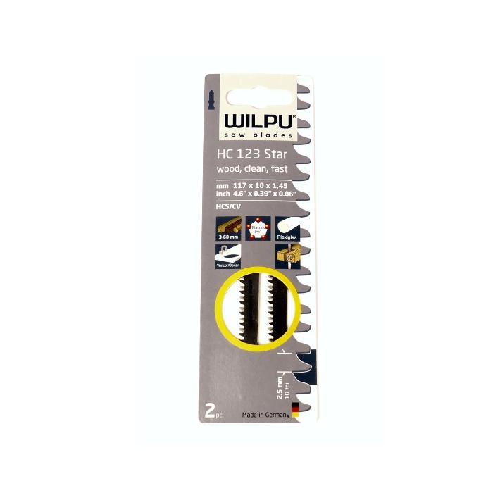 Пилка HC 123 WILPU STAR HC 123 (2шт) это сменный элемент для лобзиков. Полотно используется для аккуратного и быстрого реза по древесине до 60 мм и пластмассе. Имеет коническую форму полотна и тройную наклонную заточку зубьев. Пилка изготовлена из конверторной стали - HCS/CV. Шаг зубьев 2,5 мм, в наборе 2 пилки.