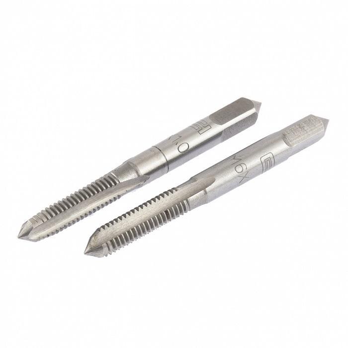 Метчик ручной комплектный Сибртех М6 х 1,0, HRC 60-64, 2 штуки, 76617- это комплект метчиков, которые выполнены из инструментальной стали и используются для нарезания сквозной внутренней резьбы на металлических заготовках.