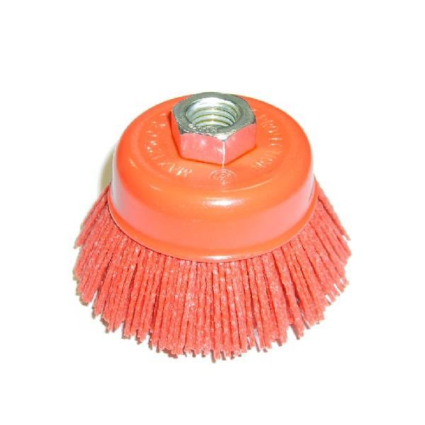 Корщетки-чашки с нейлоновым ворсом идеально подходят для деликатного шлифования металлов, цветных металлов, текстурирования (браширования) дерева. Щетка чашечная нейлоновая для ушм - самая популярная насадка для обработки бруса при помощи болгарки. Полимер-абразивные чашечные щетки также используются для снятия лакокрасочного покрытия при помощи болгарки (УШМ). Имеет присоединительную гайку М14 и просто накручивается на вал болгарки.