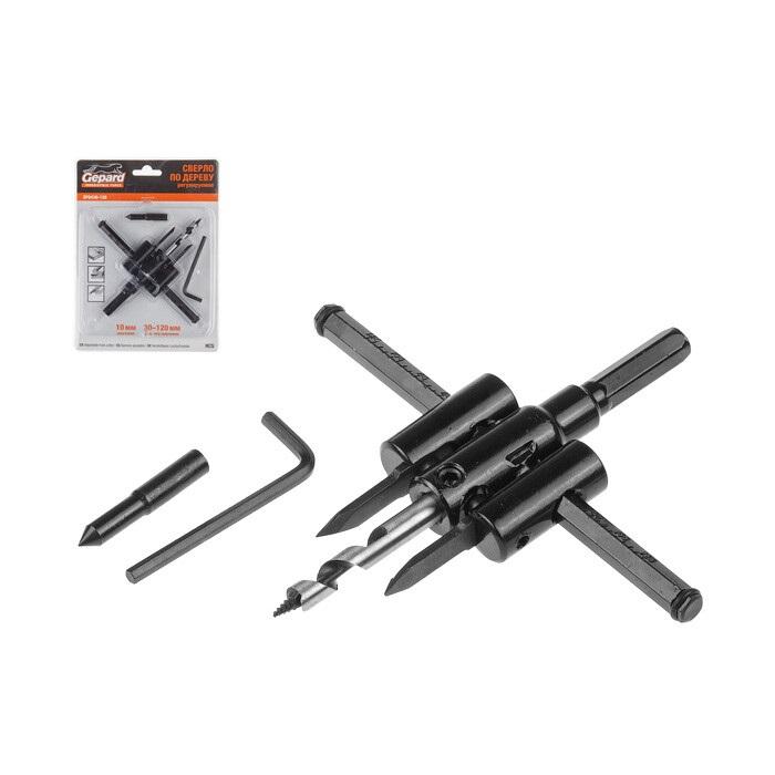 Сверло по дереву балеринка GEPARD 30-120мм круговое регулируемое с резцами, предназначенными для получения отверстий большого диаметра в дереве, ДСП, фанере, ДВП, ламинате, гипсокартоне и др.