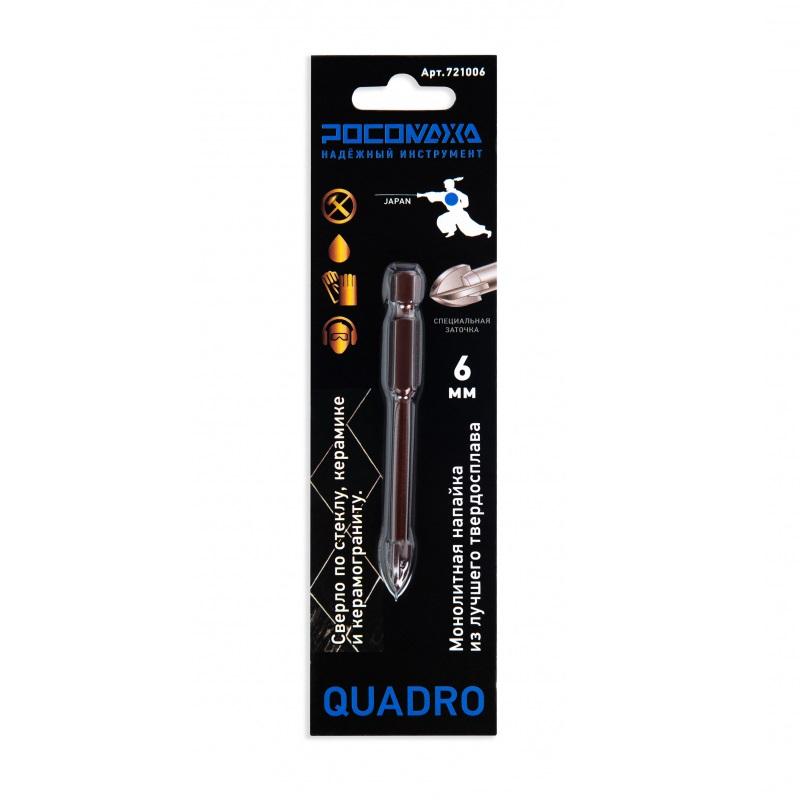 Сверло по стеклу, керамике и керамограниту 6 мм, 4 грани РОСОМАХА 721006.