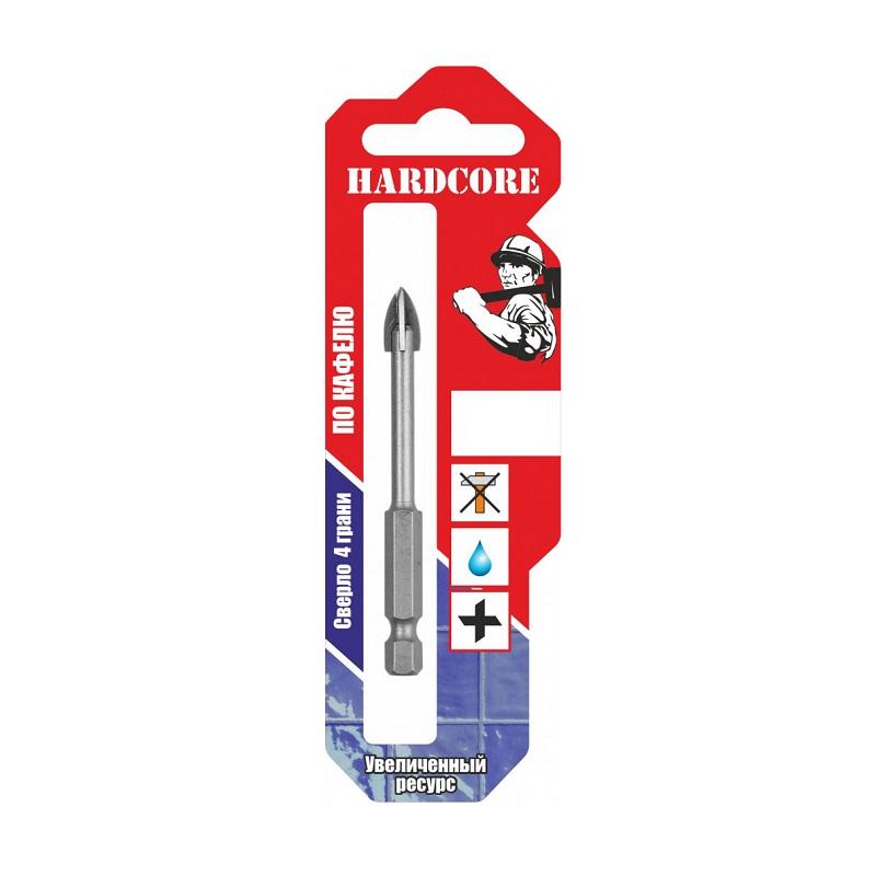 Сверло по керамограниту и керамической плитке HARDCORE имеет высокую твердость и прочность. Сверление нужно производить на невысоких оборотах дрели и обеспечивать постоянное охлаждение сверла и места сверления. Четыре грани позволяют делать более чистое отверстие. Обладает высоким ресурсом.