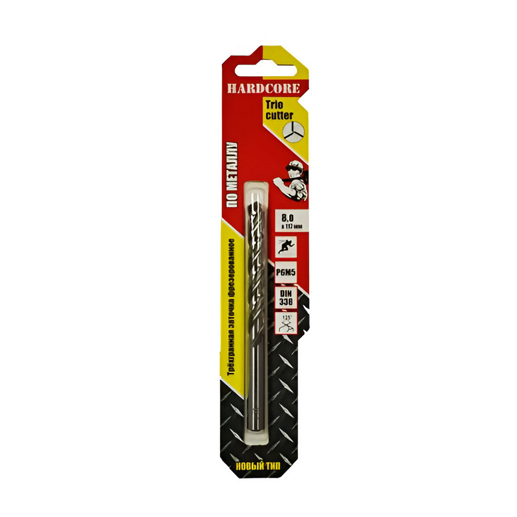 Сверло по металлу Hardcore Trio Cutter 143080, 8 мм, спиральное, хвостовик цилиндрический