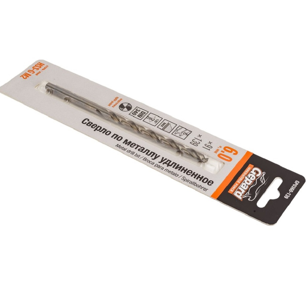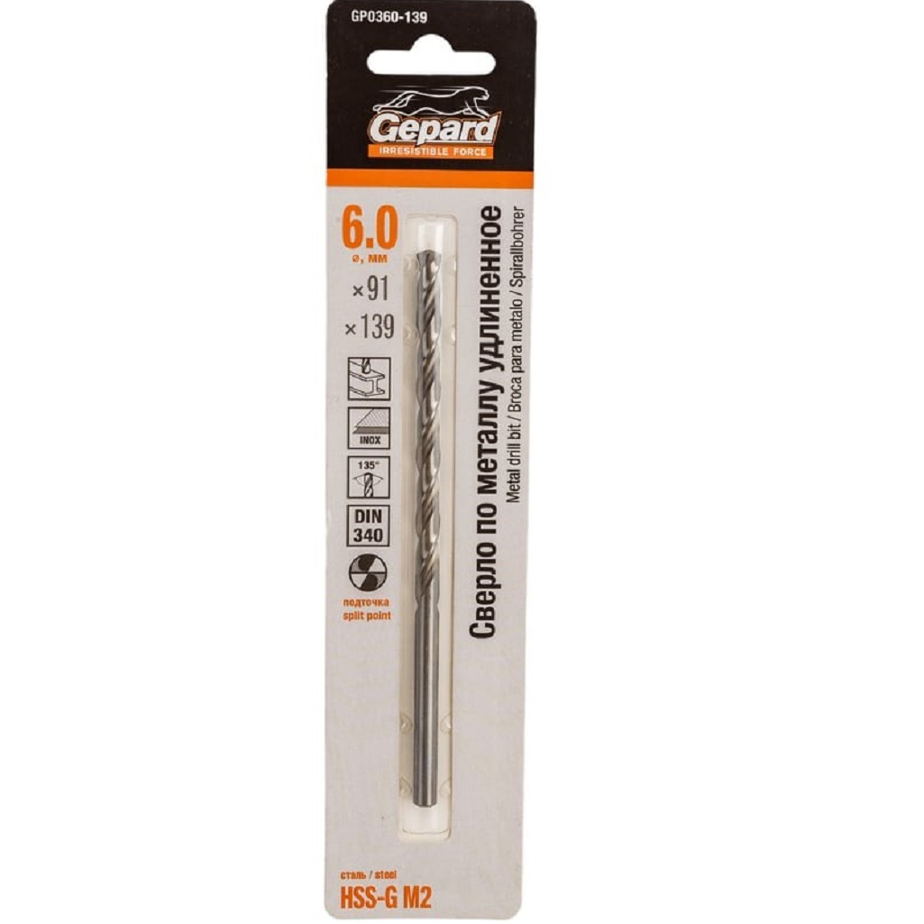 Сверло по металлу Gepard GP0360-139, 6х139 мм, удлиненное, хвостовик цилиндрический