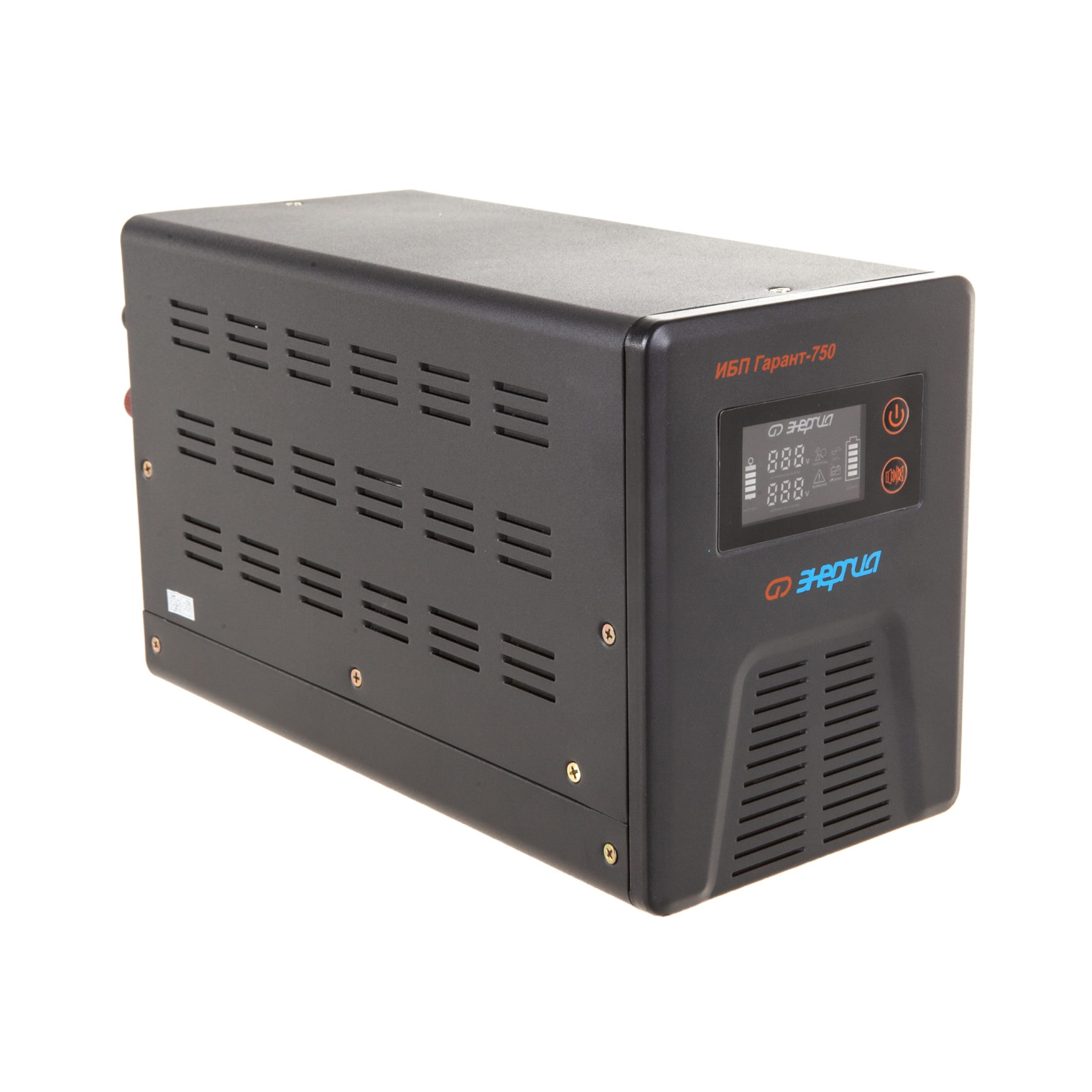 ИБП Энергия Гарант- 750 с низким уровнем шума, что обеспечивается прочным металлическим корпусом. Вентиляционные отверстия используются для своевременного вывода теплого воздуха за пределы корпуса.