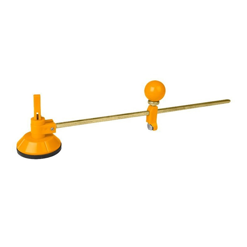 Стеклорез компасный INGCO HGCT16001 состоит из резиновой присоски и стальной металлической линейки с медным покрытием.