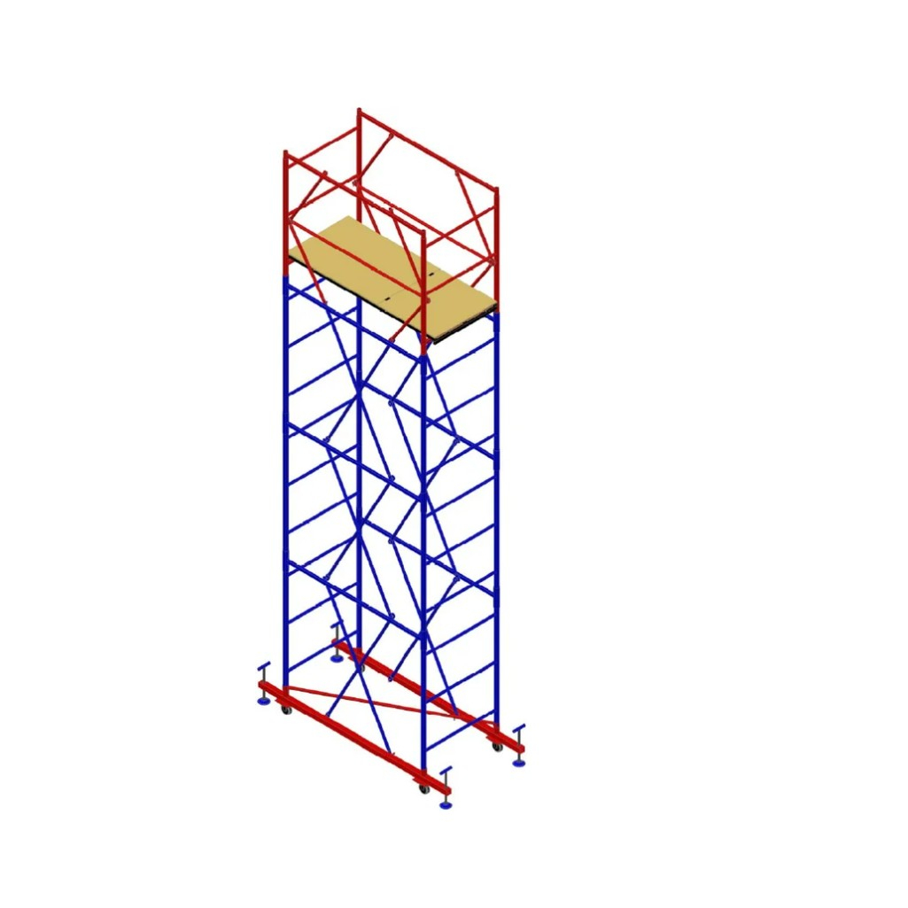 Высокие борта на рабочей площадке обеспечивают дополнительную безопасность пользователя, предотвращая случайное падение. Диагональные стяжки укрепляют соединения элементов конструкции, увеличивая её прочность и долговечность. Благодаря роликовым колесам вы сможете легко перемещать вышку-туру по рабочей площадке, что экономит ваше время и усилия.