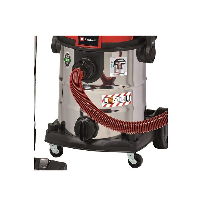 Пылесос строительный Einhell TC-VC 2025 SACL 1200 Вт предназначен для влажной и сухой уборки. Бесступенчатая регулировка мощности всасывания позволяет устройству задерживать пыль, грязь и другой строительный мусор. Благодаря фильтрации вредной пыли, такой как твердый гипс и мел, безопасен в использовании. Имеет большие колеса и ролики, что обеспечивает мобильность, поэтому пылесос легко передвигается.