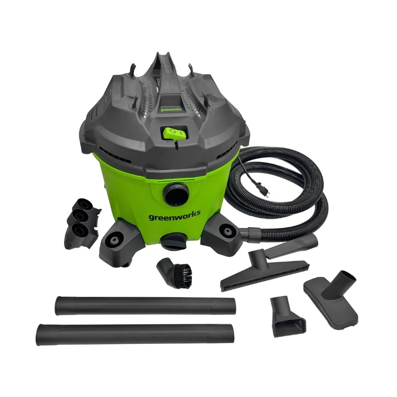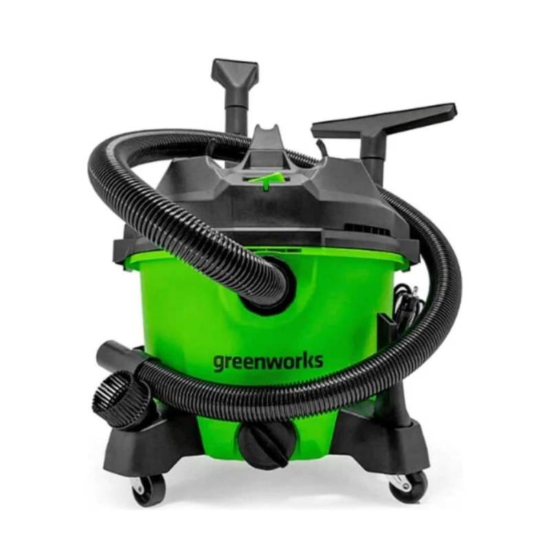 Пылесос Greenworks G120WDV можно эксплуатировать в строительстве и в быту, он предназначен для сухой уборки и сбора влажного мусора или воды.