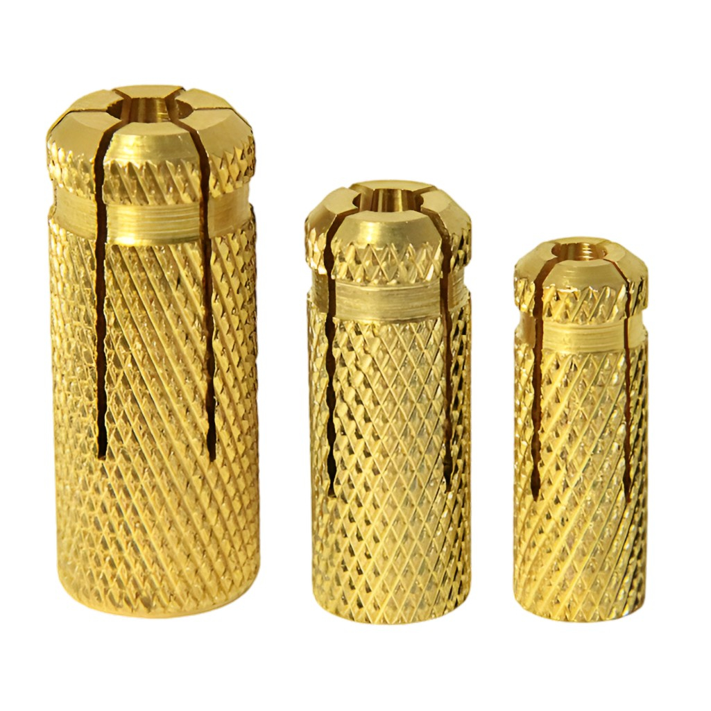 Цанга латунная используется для монтажа элементов конструкций в полнотелые материалы. Анкер выполнен из латуни и поэтому обладает повышенной устойчивостью к коррозии. Анкер забиваемый латунный часто применяется для монтажа на улице, для крепления оборудования и элементов подземных инженерных систем. Монтаж осуществляется совместно с резьбовыми шпильками, болтами, винтами.
