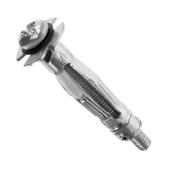 Крепёжный элемент для присоединения разнообразных конструкций к гипсокартону, пустотелым стеновым панелям из фанеры или ДСП. Шайба предназначена для более плотной фиксации и предотвращает скалывание краев отверстия. Выступы на борте предотвращают проворачивание дюбеля в материале.