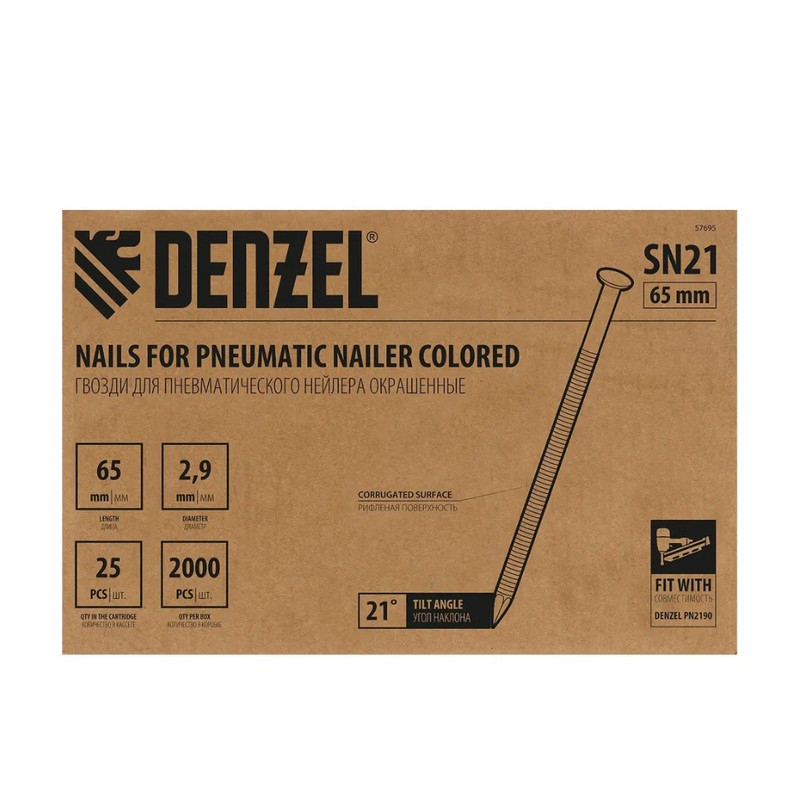 Гвозди Denzel SN21 65 мм, 2000 шт 57685