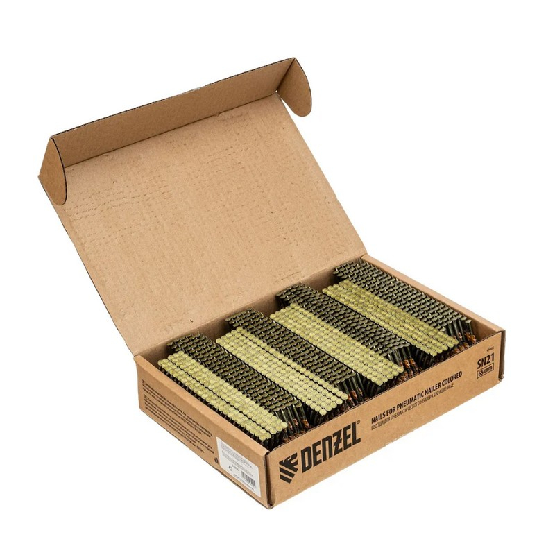 Стальные гвозди Denzel тип SN21 с цинковым покрытием — расходники для пневматического нейлера. Используются для скрепления различных материалов, полезны во время сборочных и отделочных работ.