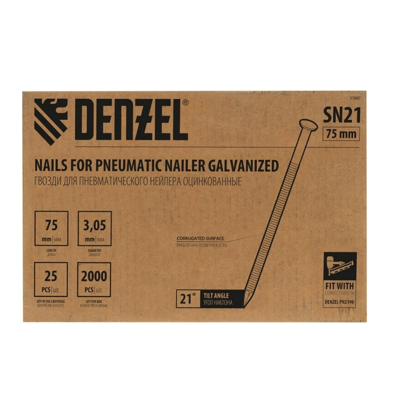 Гвозди Denzel SN21 75 мм, 2000 шт 57687
