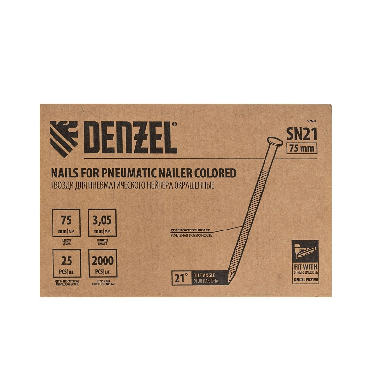 Описание гвоздей Denzel SN21 75мм 2000шт крашенных 57697