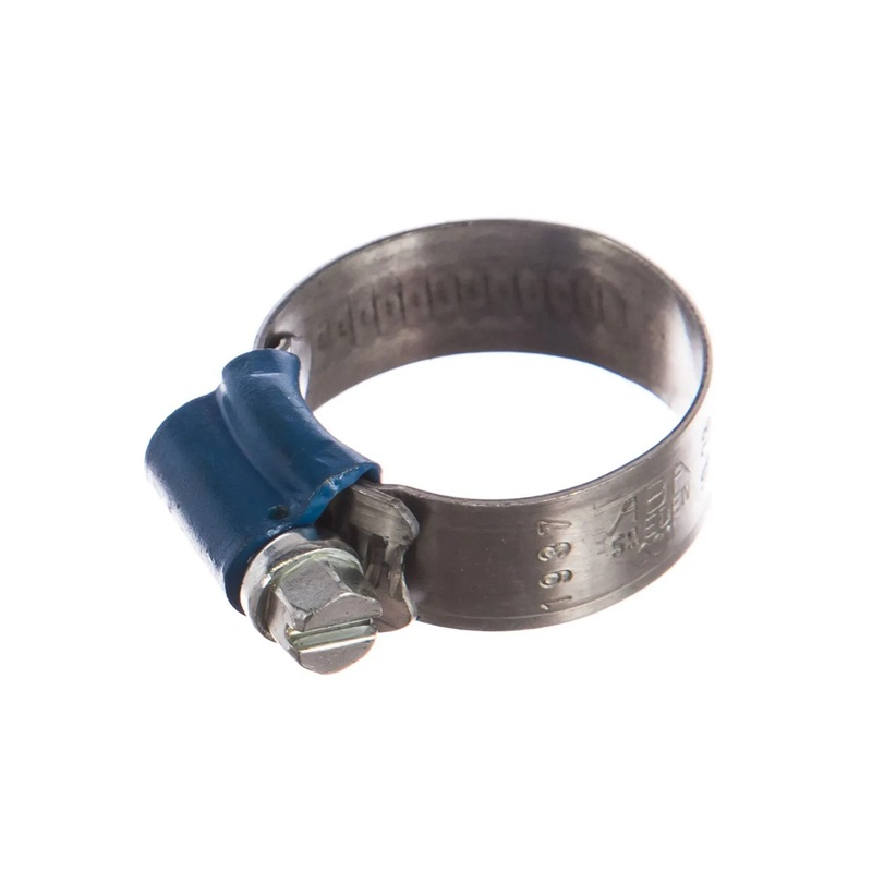 Хомут червячный обжимной ABA 22-32 9 мм, стальной - прочный замок червячного соединения с цельноштампованным корпусом, в котором обеспечен стабильный зазор и оптимальный угол резьбы в паре винт-лента, что в сочетании с высокоточным исполнением и использованием специальной алюминизированной стали, обеспечивает равномерное усилие сжатия по периметру, большой предельный момент при затяжке, высокую вибростойкость и наработку на отказ.