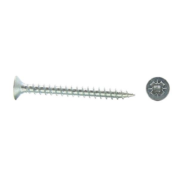 Универсальный шуруп имеет потайную головку с крестообразным шлицом и острым наконечником. Может использоваться как снаружи, так и внутри помещения, подходят для отделки во влажных помещениях. Применяется для крепежа дерева, фанеры, ДСП, листового металла (с предварительной сверловкой), искусственного камня и прочих материалов.