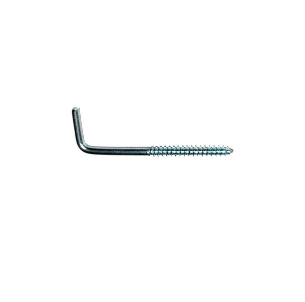 Саморез с L-образным крюком 4*70 (шуруп-костыль) применяется при создании негрузоподъёмных такелажных систем, а также поддерживающих или страхующих устройств. Также применяется с верёвками, тросами, цепями. Применяется и для подвеса проводов и кабелей. Шуруп с Г-образным крюком 4*70 может ввинчиваться в древесину, а в бетонные, кирпичные, а также в основания из камня устанавливается с помощью дюбелей. Шуруп с Г-образным крюком 4*70 мм изготовлен из углеродистой стали и оцинкован.